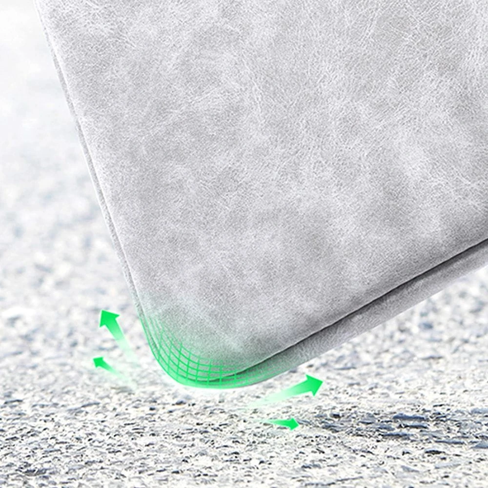 Wodoodporny poliester i skóra ekologiczna tworzą zewnętrzną część pokrowca. To istotne wtedy, gdy laptop jest noszony poza domem, biurem albo uczelnią.